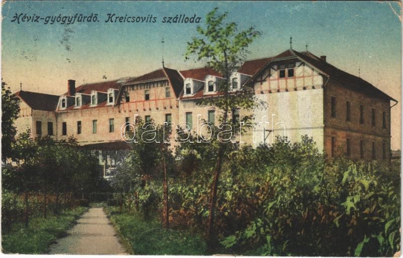 1921 Hévíz-gyógyfürdő, Kreicsovits szálloda (EK) https://www.darabanth.com/de/400-Fernauktion/400.0/Ansichtskarten/Ungarn~1000006/1921-Heviz-gyogyfurdo-Kreicsovits-szalloda-EK~II2453454