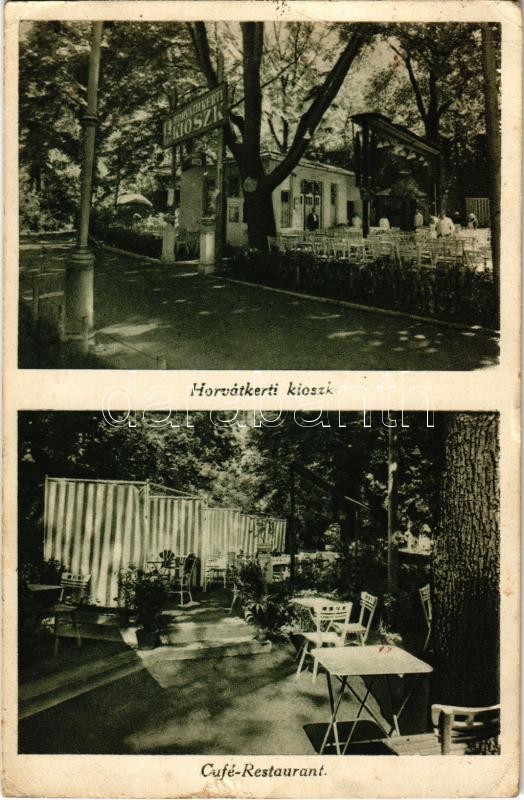 1931 Budapest IV. Horvátkerti kioszk, Café-Restaurant, étterem és kávé... https://www.darabanth.com/de/400-Fernauktion/400.0/Ansichtskarten/Ungarn~1000006/1931-Budapest-IV-Horvatkerti-kioszk-Cafe-Restaurant-etterem-es-kavehaz-kert-Vaci-u-16~II2021388