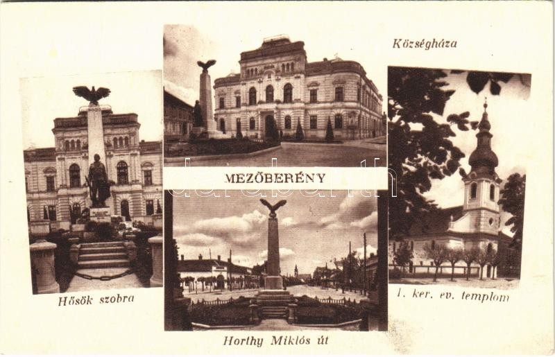 1937 Mezőberény, Hősök szobra, községháza, Horthy Miklós út, I. ker. e... https://www.darabanth.com/de/400-Fernauktion/400.0/Ansichtskarten/Ungarn~1000006/1937-Mezobereny-Hosok-szobra-kozseghaza-Horthy-Miklos-ut-I-ker-evangelikus-templom~II2451621