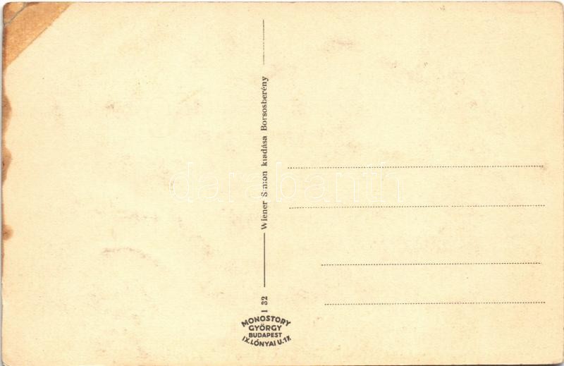Beschreibung: Borsosberény, Római katolikus templom, Községháza, Wiener Simon üzlete és saját kiadása (r)