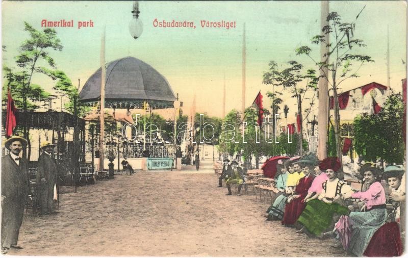 Beschreibung: Budapest XIV. Ősbudavára, Városliget, Amerikai park, Törley pezsgő reklám, zene pavilon