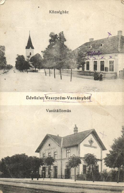 Veszprémvarsány, Varsány; vasútállomás, Községháza (EB) https://www.darabanth.com/de/400-Fernauktion/400.0/Ansichtskarten/Ungarn~1000006/Veszpremvarsany-Varsany-vasutallomas-Kozseghaza-EB~II1423106