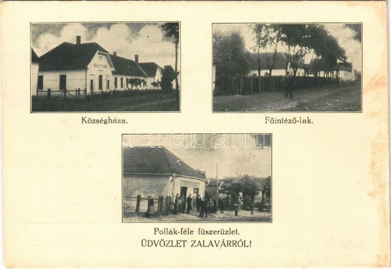 Zalavár, Községháza, Főintéző lak, Pollák-féle fűszerüzlet (fl) https://www.darabanth.com/de/400-Fernauktion/400.0/Ansichtskarten/Ungarn~1000006/Zalavar-Kozseghaza-Fointezo-lak-Pollak-fele-fuszeruzlet-fl~II2453946