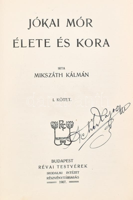 Mikszáth Kálmán: Jókai Mór élete és kora I-II. köt. Bp., 1907, Révai. Korabeli átkötött aranyozott, álbordás gerincű félbőr-kötés, festett lapélekkel, a borítón és a gerincen egészen kis kopásnyomokkal, névbejegyzéssel.