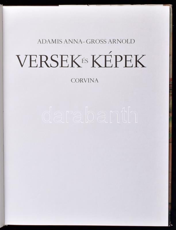Adamis Anna-Gross Arnold: Versek és képek. Bp.,1979,Corvina. Kiadói egészvászon-kötés, kiadói javított, kissé szakadt papír védőborítóban, de egyébként jó állapotban.