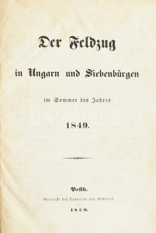 [Ramming von Riedkirchen, Wilhelm (1815-1876)]: Der Feldzug in Ungarn und Siebenbürgen im Sommer des Jahres 1849. Pest, 1850., Landerer és Heckenast, VII+549+2 p. Német nyelven. Korabeli aranyozott félvászon-kötésben, kopott borítóval és gerinccel, foltos lapokkal, hiányzó térképekkel.