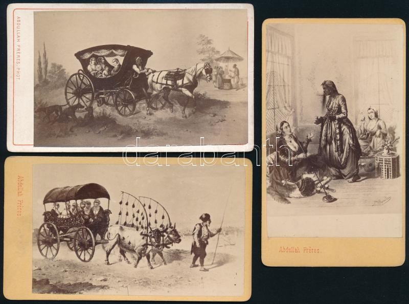 Beschreibung: cca 1900 3 festmény fotónyomata, Constantinople, Abdullah Fréres, 10x6 cmx 3