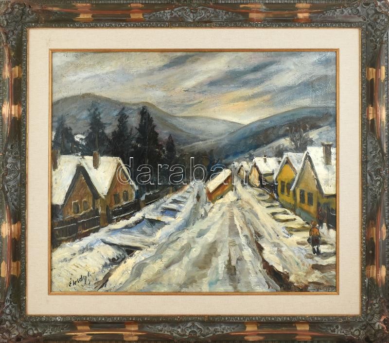 Élesdy István (1912-1987): Téli falu. Olaj, vászon, jelzett. Javított.... https://www.darabanth.com/de/400-Fernauktion/400.0/Gemalde-und-Grafiken/Gemalde-und-Grafiken~3000001/Elesdy-Istvan-1912-1987-Teli-falu-Olaj-vaszon-jelzett-Javitott-Dekorativ-serult-ker~II2453217