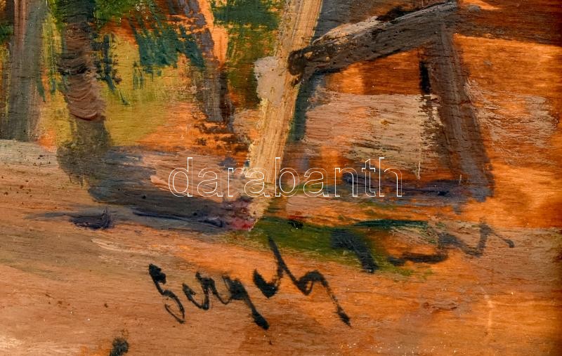 Gergely Imre (1868-1957): Virágpiac. Olaj, fa. Jelzett. Fa keretben, 30×37,5 cm. Jótékonysági aukció! A műtárgy megvásárlásával a Piros Orr Bohócdoktorok Alapítványt támogatja.