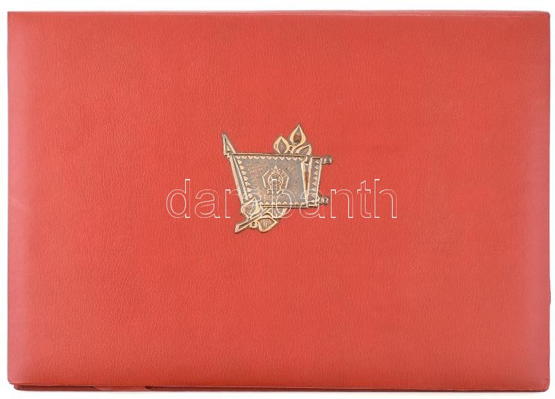 Beschreibung: Gönczi Béla (1934): A Magyar Néphadsereg 12 db rézkarc, jelzett 19,5x29 cm Műbőr mappában magyar címer domborművel