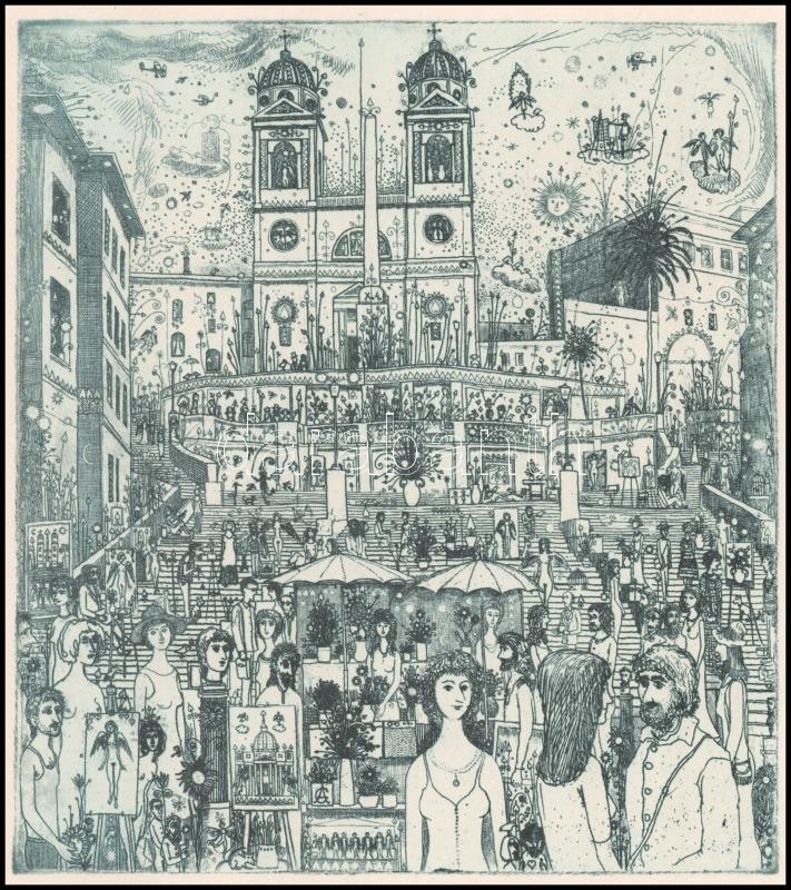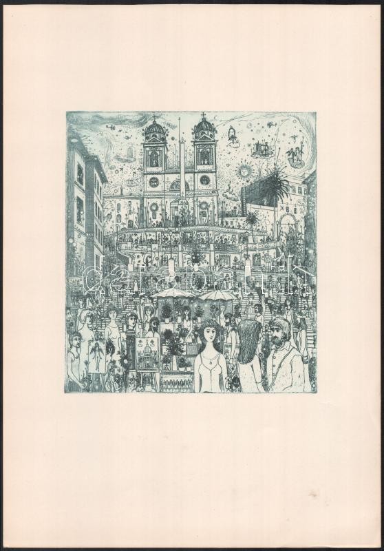 Beschreibung: Gross Arnold (1929-2015): A Spanyol Lépcső Rómában. Ofszet nyomat, papír, jelzés nélkül. Az 1973-ban megjelent Corvina mappából. 20,5x18,5 cm