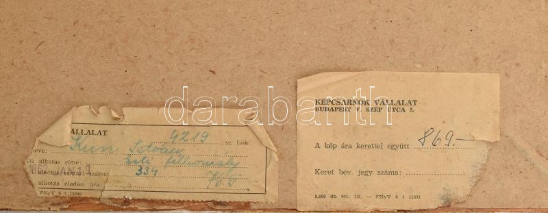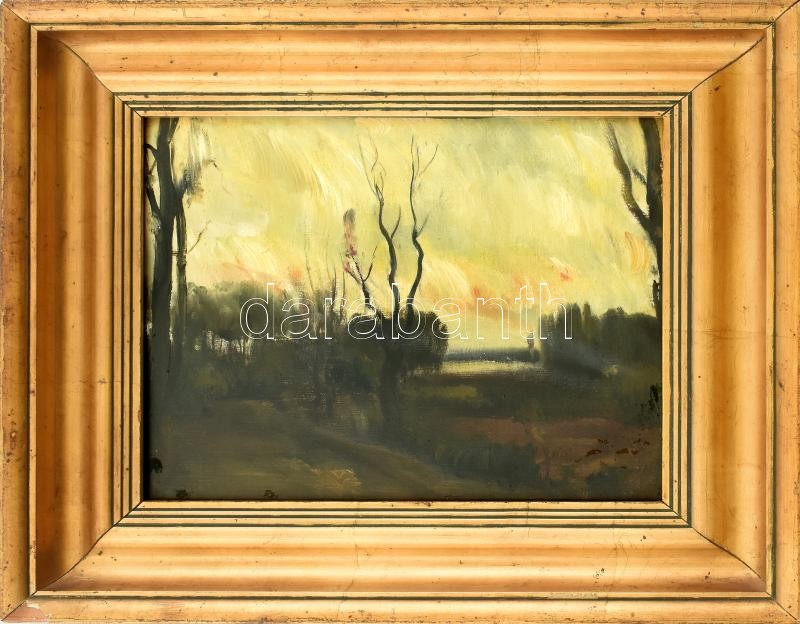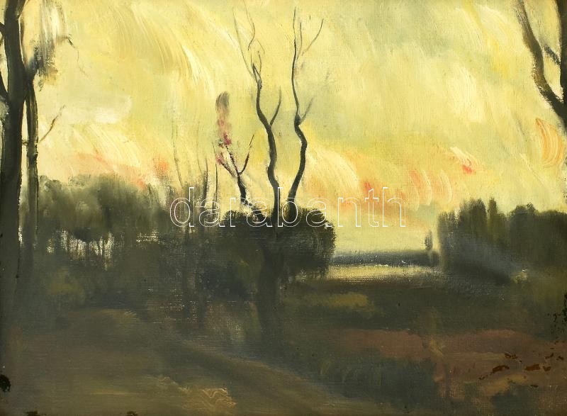Kun István (1908-1980): Esti félhomály. Olaj, vászon. Jelzés nélkül. Hátoldalán Képcsarnok Vállalat címkéjével. Kissé kopott üvegezett fa keretben. Vászon kissé hullámos. 25x32 cm