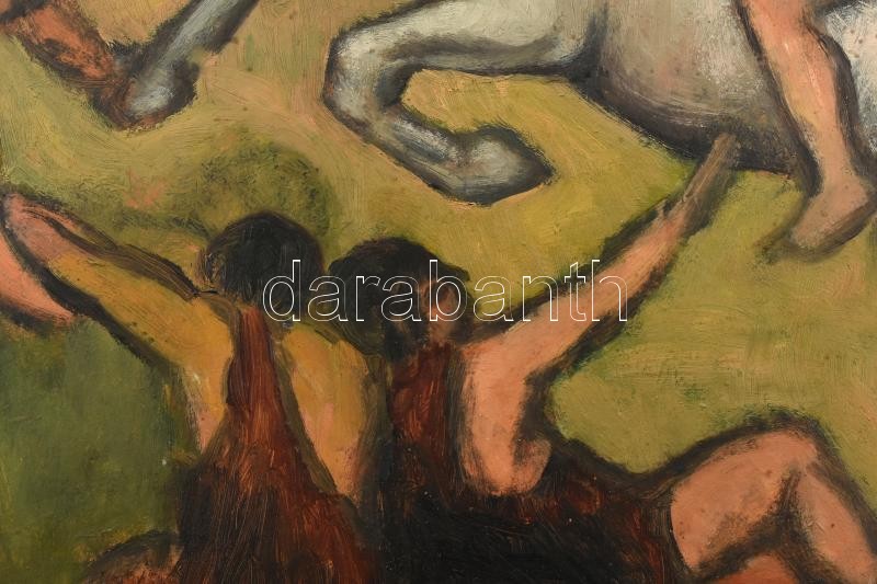 Feltehetően Kádár Béla korai munkája: Harcosok Olaj, karton. 45x60cm. Jelzés nélkül. cca. 1910 körül