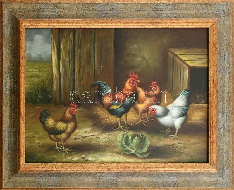 Jelzés nélkül: Baromfiudvar. Olaj, karton. Üvegezett fa keretben. 30x4... https://www.darabanth.com/de/400-Fernauktion/400.0/Gemalde-und-Grafiken/Gemalde-und-Graphic-quot-signiertquot-quot-ohne-Signquot-~3000002/Jelzes-nelkul-Baromfiudvar-Olaj-karton-Uvegezett-fa-keretben-30x40-cm~II2447567