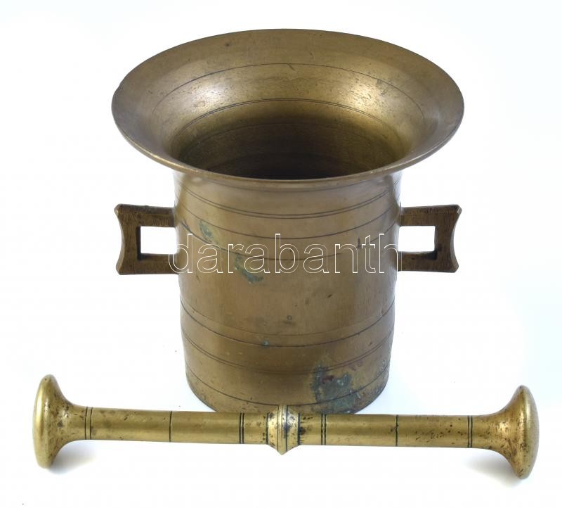 Nagyméretű réz mozsár törővel, kissé kopottas, m: 15,5 cm, d: 16,5 cm,... https://www.darabanth.com/de/400-Fernauktion/400.0/Kunst-Dokumente-andere-Sammelgebiete/Flohmarkt~500033/Nagymeretu-rez-mozsar-torovel-kisse-kopottas-m-15-5-cm-d-16-5-cm-2-2-kg~II2452930