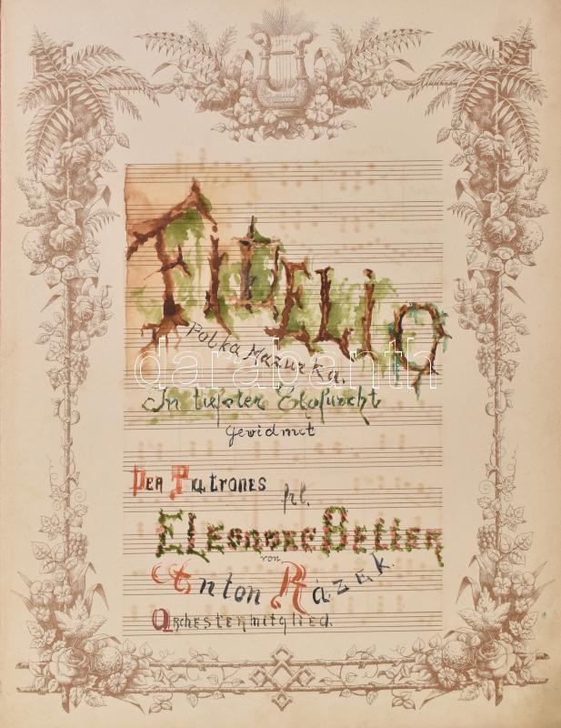 1893 Fidelio polka kézzel rajzolt kotta, díszes, aranyozott egészvászon borítóval, szép állapotban