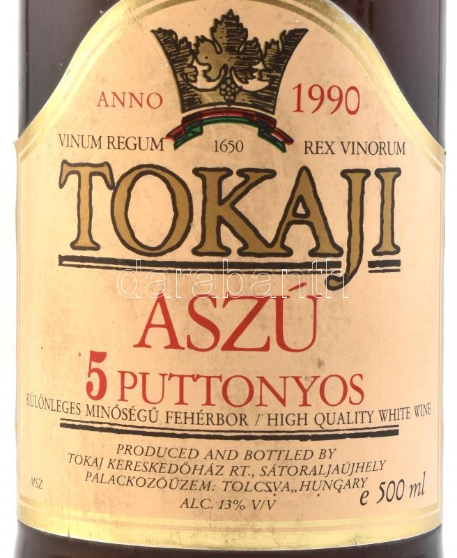 1990 Tokaji Aszú 5 puttonyos bontatlan palack. Tokaj kerekedőház. Szak... https://www.darabanth.com/de/400-Fernauktion/400.0/Kunst-Dokumente-andere-Sammelgebiete/Vintage-Weine-Getranke~500013/1990-Tokaji-Aszu-5-puttonyos-bontatlan-palack-Tokaj-kerekedohaz-Szakszeruen-tarolt~II2452331