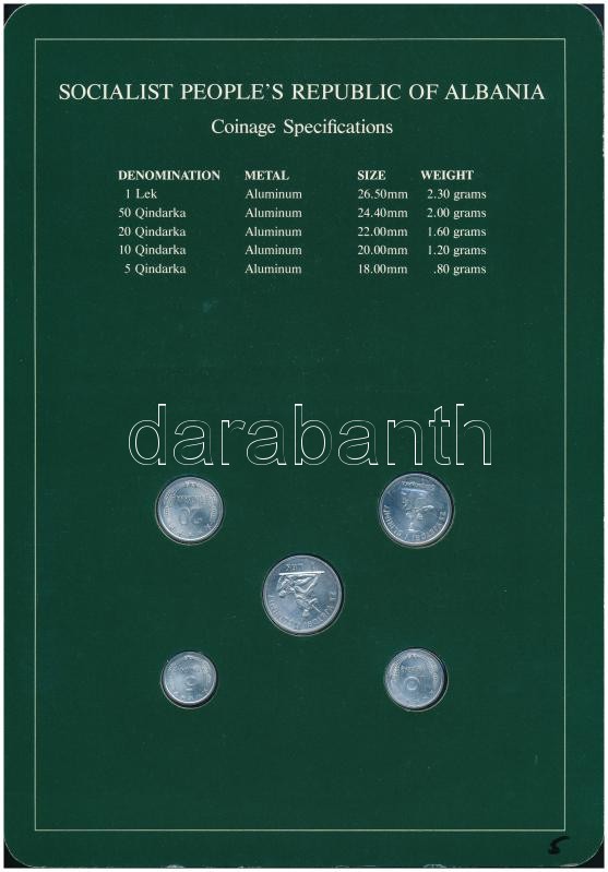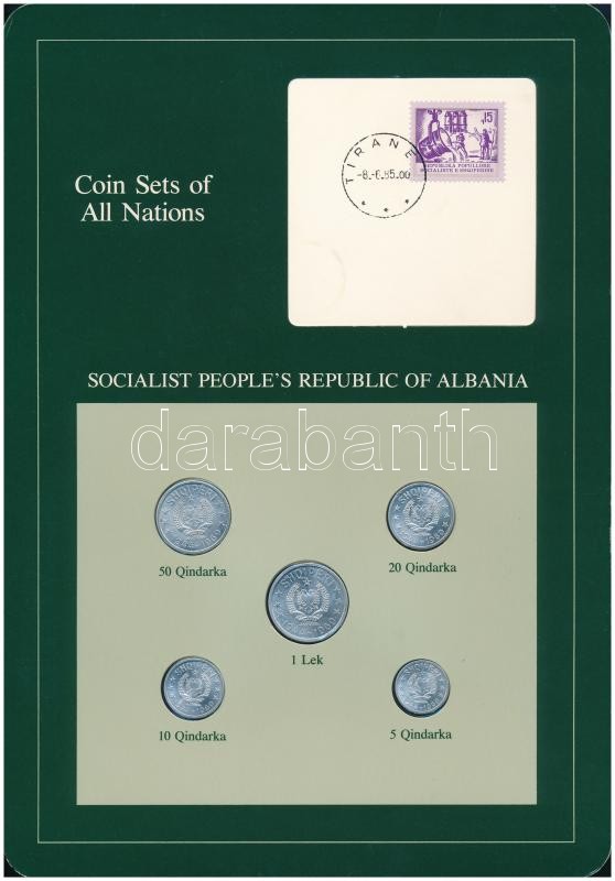 Albania 1969. 5 Qindarka - 1 Lek (5xdiff) "Coin Sets of All Nations" coin set on cardboard with stamp C:UNC