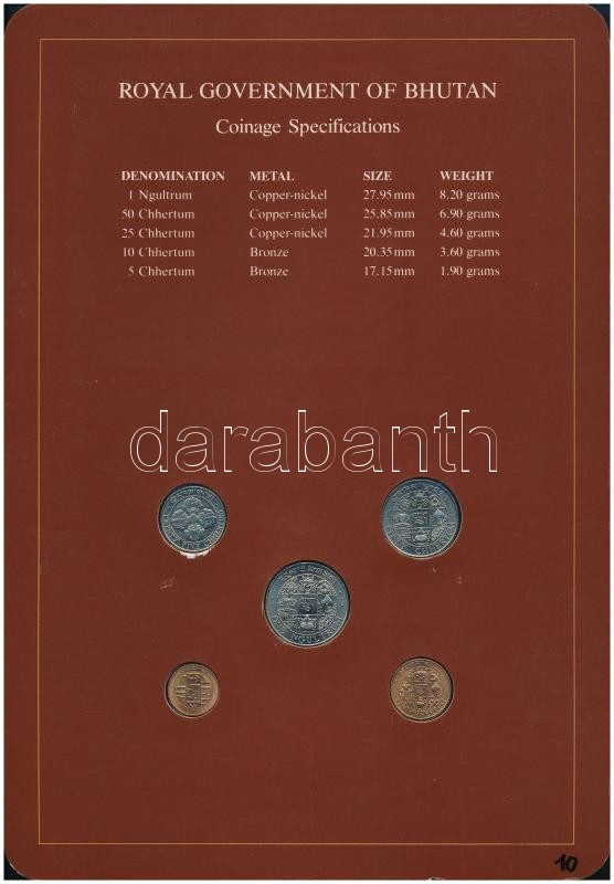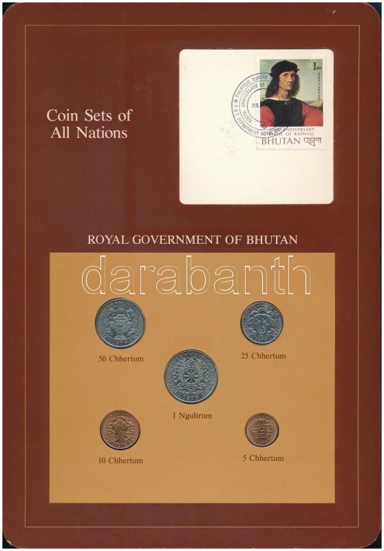 Bhutan 1979. 5 Chhertum - 1 Ngultrum (5xdiff) "Coin Sets of All Nations" coin set on cardboard with stamp C:UNC