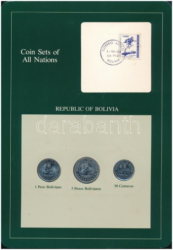 Bolivia 1978. 50 Centavos - 5 Pesos Bolivianos (3xdiff) "Coin Sets of All Nations" coin set on cardboard with stamp C:UNC,AU
