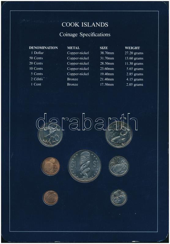 Cook-szigetek 1983. 1c-1$ (7xklf), "Coin Sets of All Nations" forgalmi szett felbélyegzett kartonlapon T:1
