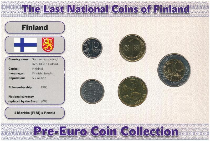 Finnország 1993-1999. 10p-10M (5xklf) forgalmi szett "Az utolsó nemzeti érmék" T:1-,2