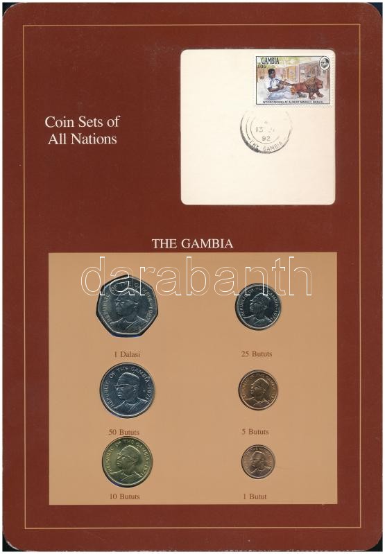 Gambia 1971-1987. 1 Butut - 1 Dalasi (6xdiff) "Coin Sets of All Nations" coin set on cardboard with stamp C:UNC