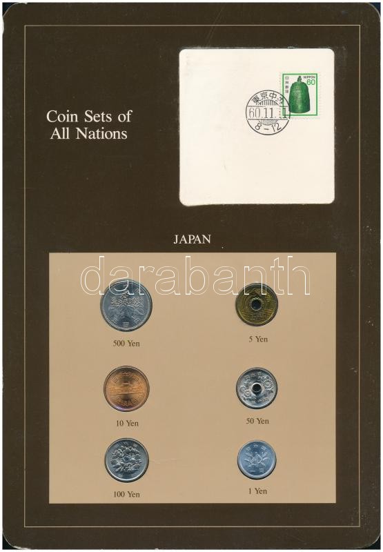 Japán 1980-1981. 1Y-500Y (6xklf), "Coin Sets of All Nations" forgalmi szett felbélyegzett kartonlapon T:1