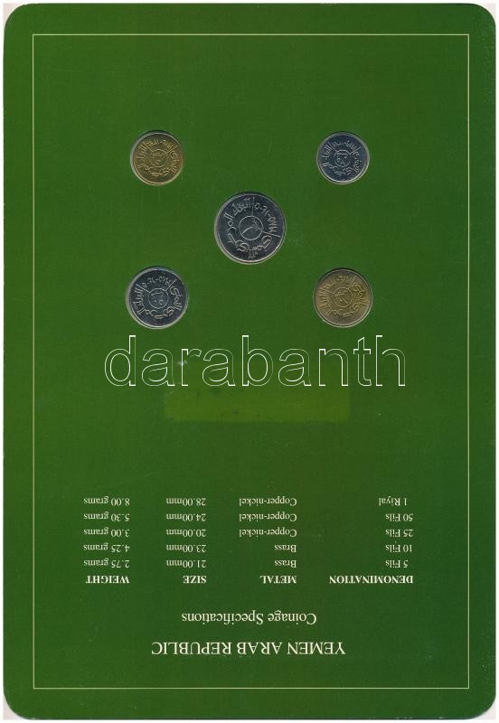 Jemen 1974-1980. 5f-1R (5xklf), "Coin Sets of All Nations" forgalmi szett felbélyegzett kartonlapon T:1 Yemen 1974-1980. 5 Fils - 1 Riyal (5xdiff) "Coin Sets of All Nations" coin set on cardboard with stamp C:UNC