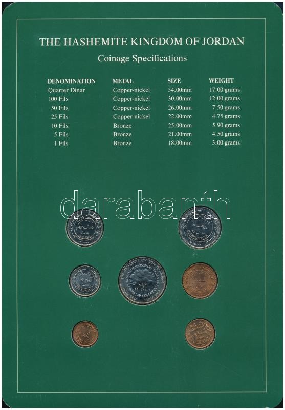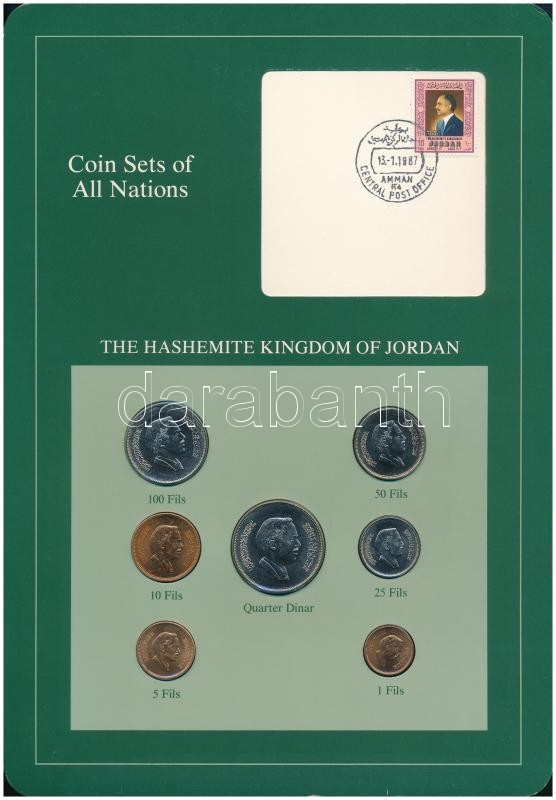 Jordánia 1978-1984. 1f-1/4D (7xklf), "Coin Sets of All Nations" forgalmi szett felbélyegzett kartonlapon T:1