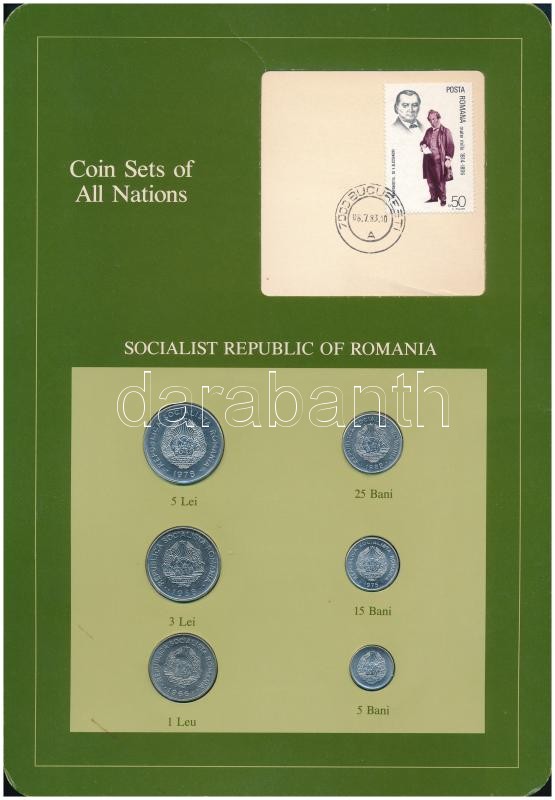 Románia 1966-1982. 5b-5L (6xklf), "Coin Sets of All Nations" forgalmi szett felbélyegzett kartonlapon T:1