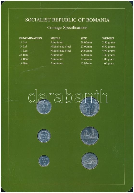 Romania 1966-1982. 5 Bani - 5 Lei (6xdiff) "Coin Sets of All Nations" coin set on cardboard with stamp C:UNC