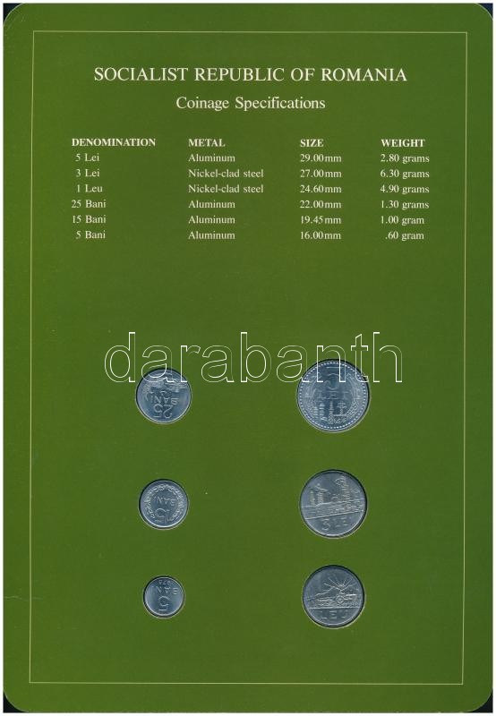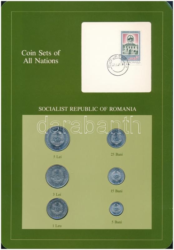Romania 1966-1982. 5 Bani - 5 Lei (6xdiff) "Coin Sets of All Nations" coin set on cardboard with stamp C:UNC