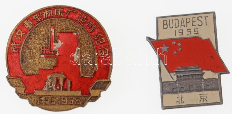 Beschreibung: 1955-1958. Két darab kínai jelvény, egyik "BUDAPEST 1955" felirattal T:1-,2
