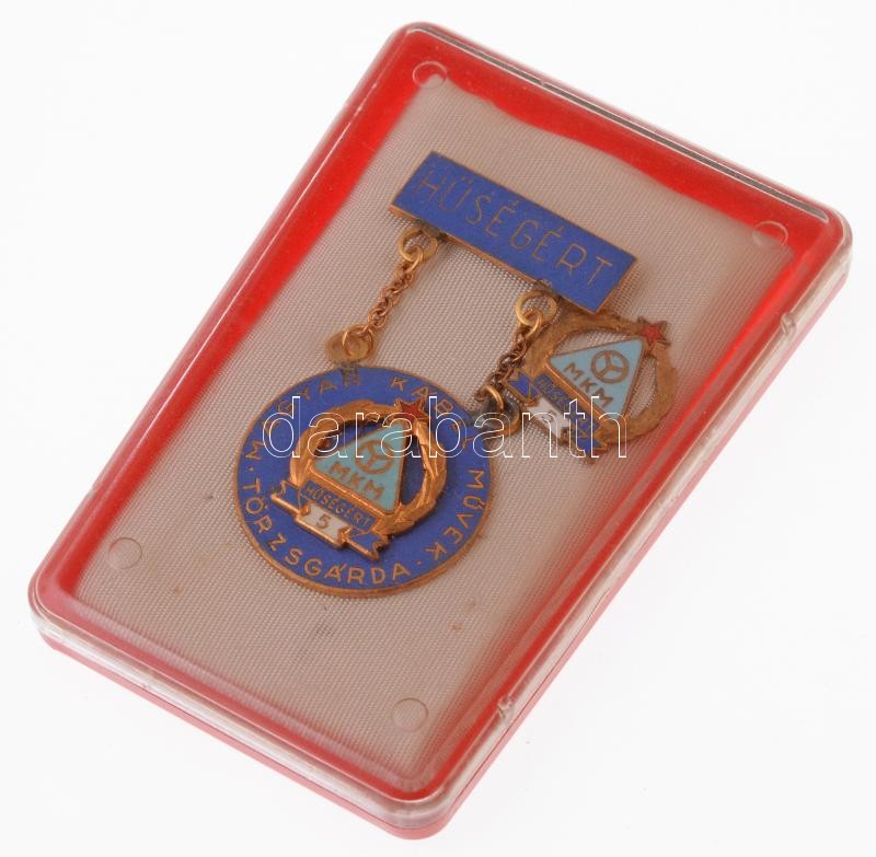 Beschreibung: 1964. "Magyar Kábel Művek Törzsgárda - Hűségért" 5 év után, aranyozott, zománcozott kitüntető jelvény miniatűrrel eredeti dísztokban T:1