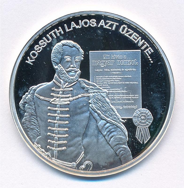 DN "Nemzetünk nagyjai - Kossuth Lajos" Ag emlékérem tanúsítvánnyal (10,37g/0.999/35mm) T:PP fo.