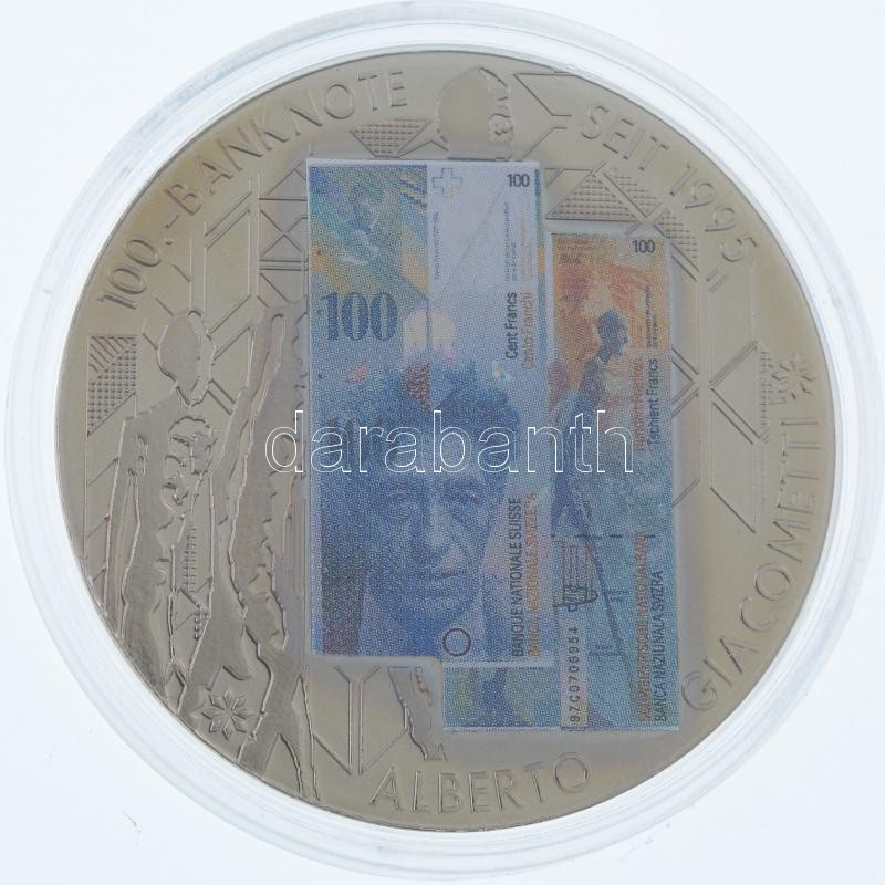 Svájc DN "100.-banknote seit 1995" fém emlékérem 100Fr svájci bankjegy multicolor képével (50mm) T:1