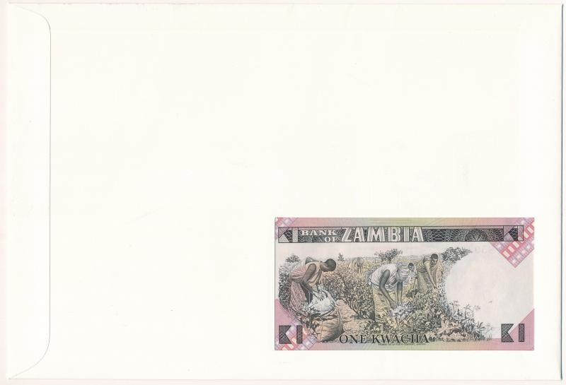 Zambia 1980-1988. 1 Kwacha in envelope with stamp and cancellation C:UNC