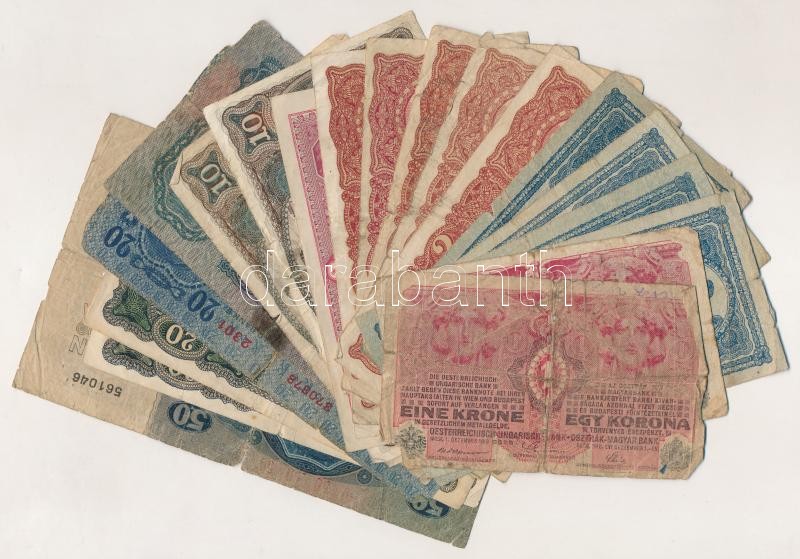 1913-1920. 1K-50K (19db) T:III-IV https://www.darabanth.com/de/400-Fernauktion/400.0/Numismatik/Ungarische-Banknoten~2000007/1913-1920-1K-50K-19db-TIII-IV~II2453486