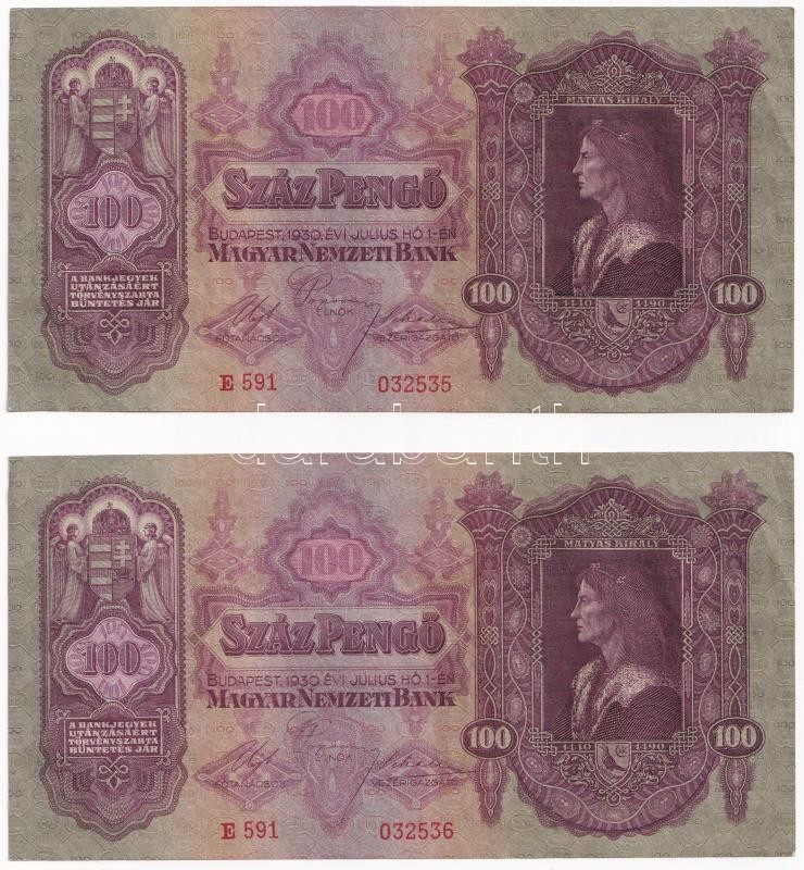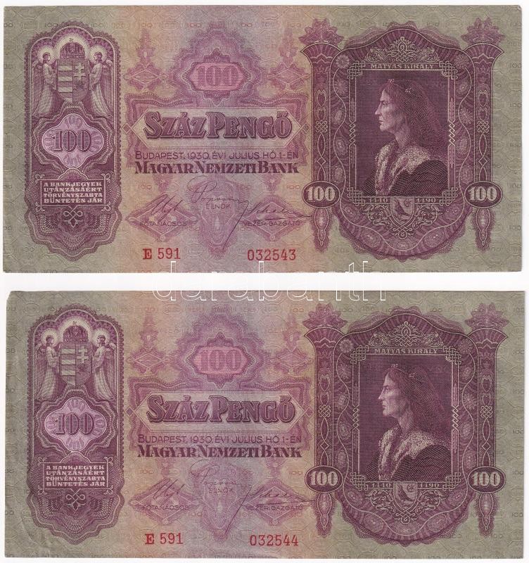 Beschreibung: 1930. 100P (4x) 2+2 sorszámkövetők T:I-,II