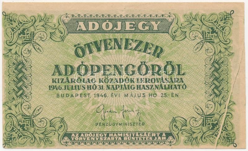 Beschreibung: 1946. 50.000AP eltolódott nyomat, nyomdai papírráncból eredő nyomathibával T:III