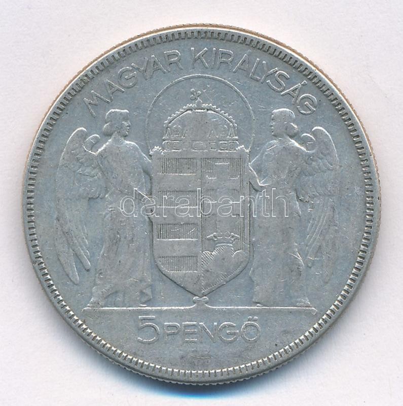1930. 5P Ag "Horthy jobbra" T:3 Adamo P8 https://www.darabanth.com/de/400-Fernauktion/400.0/Numismatik/Ungarische-Munzen-und-Munzen-mit-ungarischem-Munzzeichen~3000005/1930-5P-Ag-Horthy-jobbra-T3-Adamo-P8~II2452431