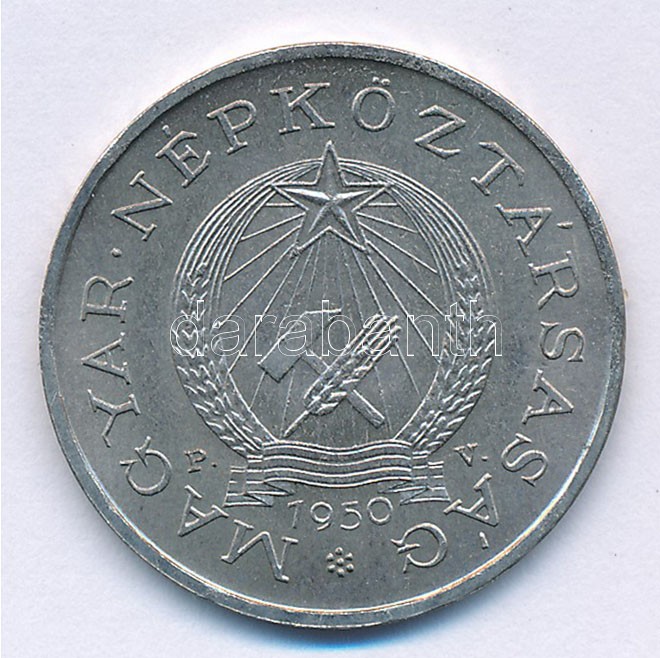Hungary 1950. ... https://www.darabanth.com/de/400-Fernauktion/400.0/Numismatik/Ungarische-Munzen-und-Munzen-mit-ungarischem-Munzzeichen~3000005/1950-2Ft-PV-probaveret-jelzessel-T1--Hungary-1950-2-Forint-with-PV-trial-strike-si~II2433859
