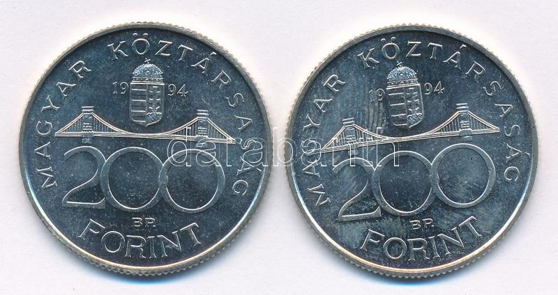 1994. 200Ft Ag "Deák" (2x) T:1,1- Adamo F13.1 https://www.darabanth.com/de/400-Fernauktion/400.0/Numismatik/Ungarische-Munzen-und-Munzen-mit-ungarischem-Munzzeichen~3000005/1994-200Ft-Ag-Deak-2x-T1-1-Adamo-F131~II2457515