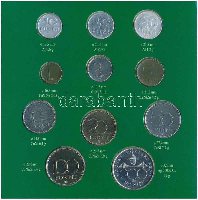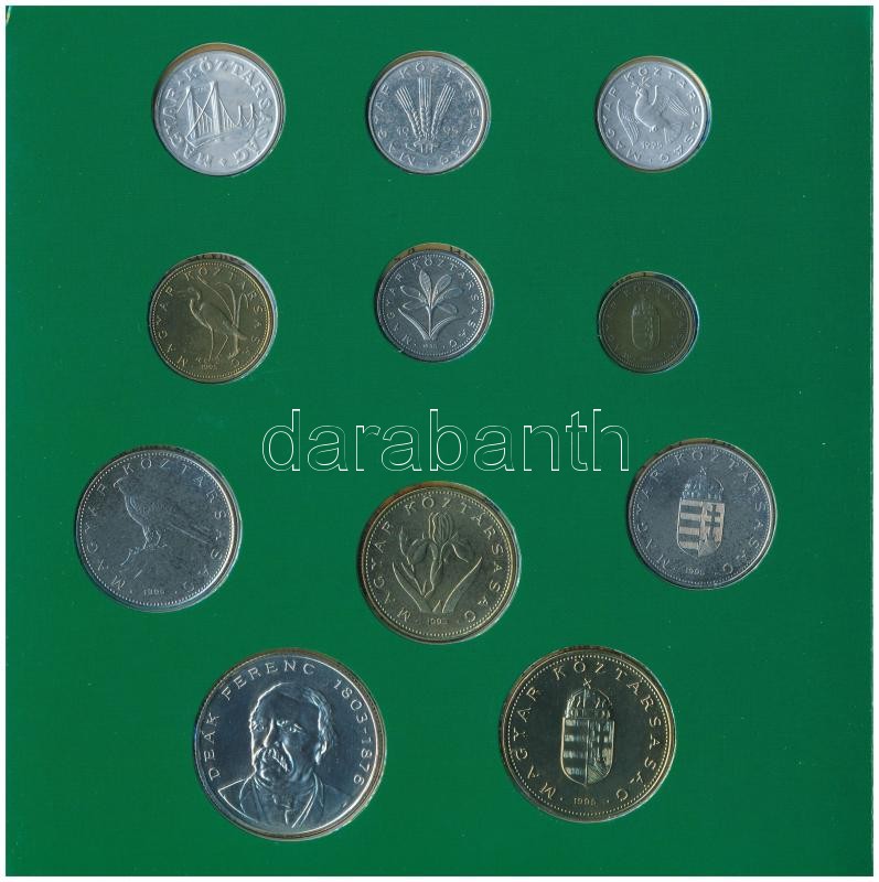 1995. 10f-200Ft (11xklf) forgalmi sor dísztokban, benne 200Ft Ag "Deák", "Magyarország pénzérméi" sorozat. A tokon a ragasztás részben elengedett. T:BU patina