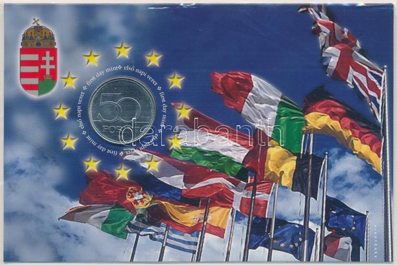 2004. 50Ft Cu-Ni "Magyar Köztársaság az Európai Unió tagja" ... https://www.darabanth.com/de/400-Fernauktion/400.0/Numismatik/Ungarische-Munzen-und-Munzen-mit-ungarischem-Munzzeichen~3000005/2004-50Ft-Cu-Ni-Magyar-Koztarsasag-az-Europai-Unio-tagja-elso-napi-veret-sorszamozott-00~II2455292