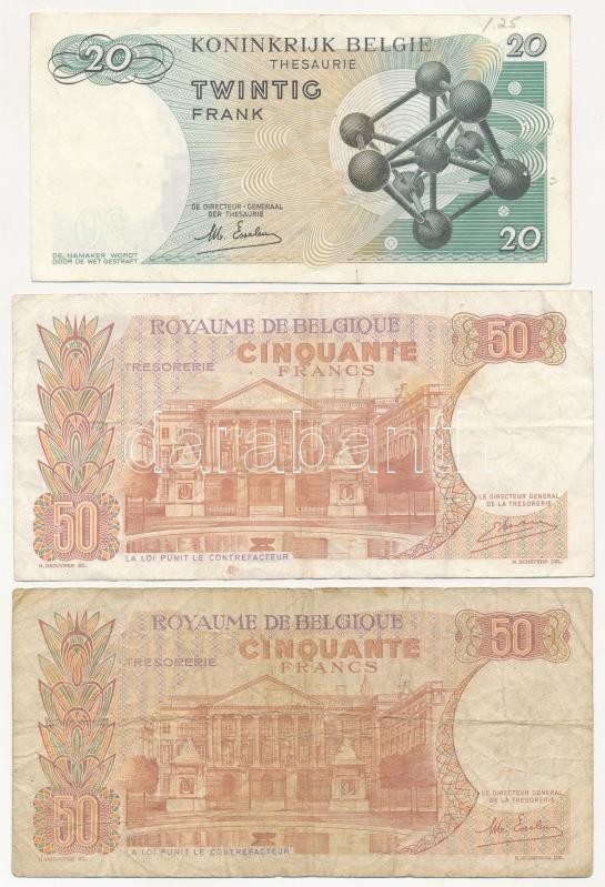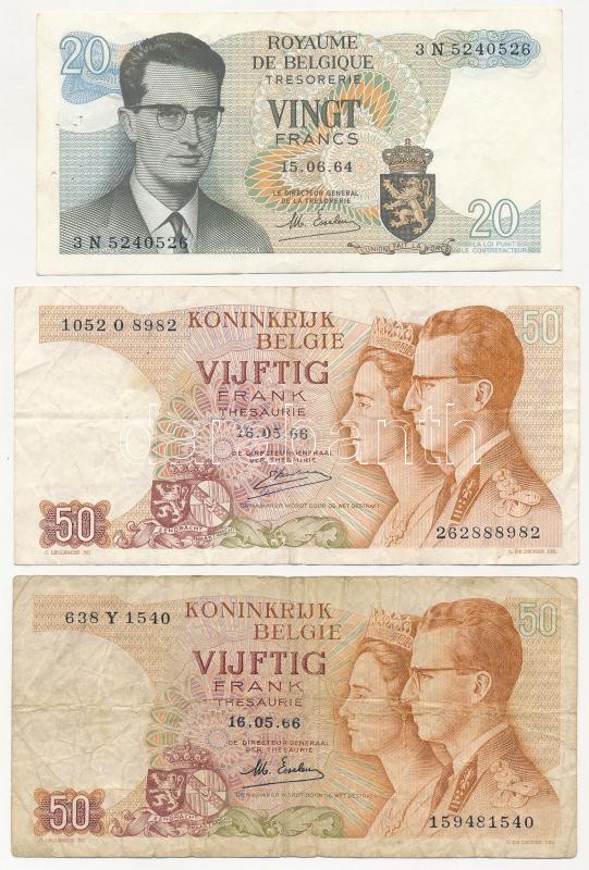 Belgium 1964. 20Fr + 1966. 50Fr (2x) T:III egyiken tűlyukak