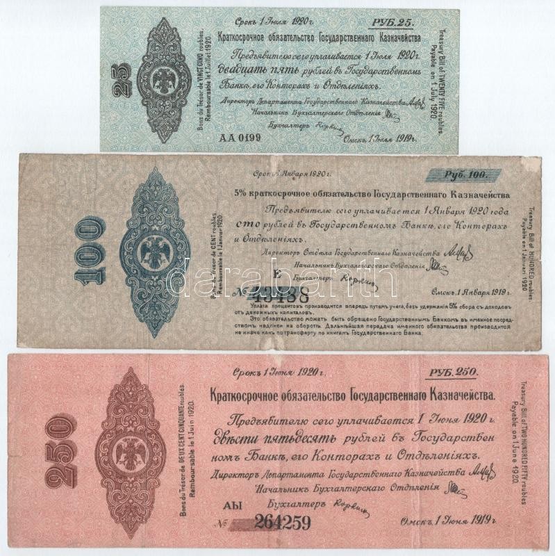Beschreibung: Oroszország / Szibéria és Urál / Ideiglenes Szibériai Igazgatás 1919. 25R + 100R + 250R T:III