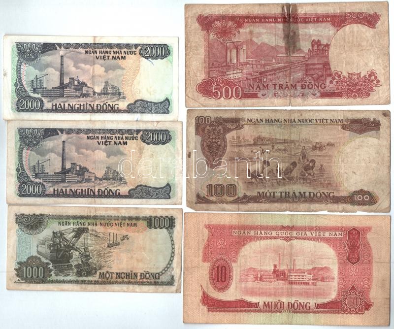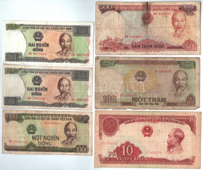 Vietnam 1958-1987. 10 Dong - 2000 Dong 6 banknotes, 5diff, C:F-G