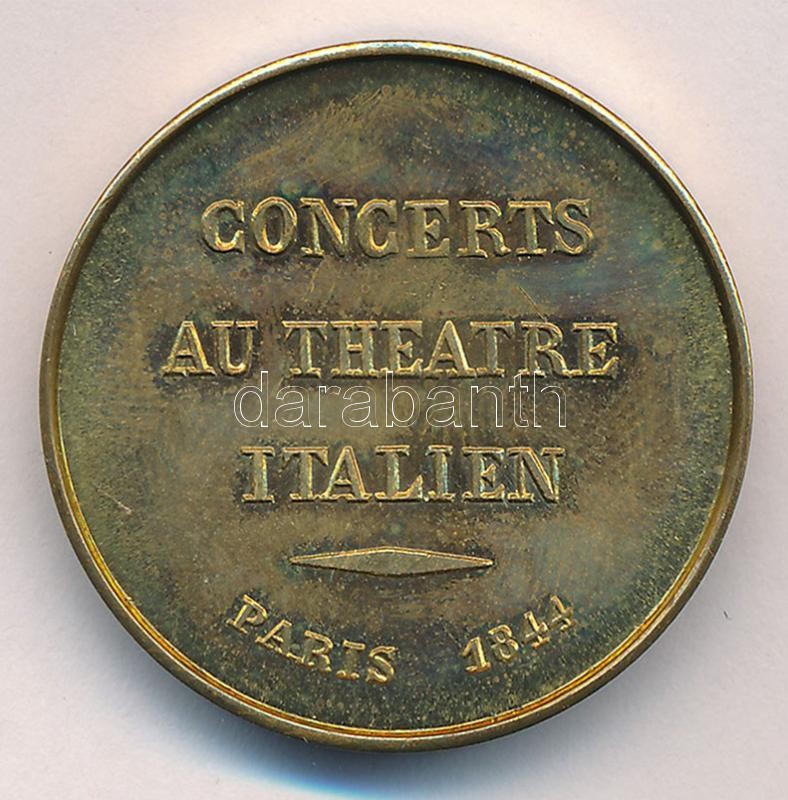 Franciaország 1844. "Liszt Ferenc koncert 1844 Párizs" kétoldalas Br emlékérem, jelzett utánveret "BOVY" szignó "HR" jelzéssel kiegészítve. Műanyag dísztokban, német nyelvű leírással. Szign.: A. Bovy (30,5mm) T:1